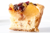 自社で焼き上げるフレッシュバターたっぷりのパイ生地にたっぷりのりんごで仕上げたアップルパイ。レーズン、クランベリー、パパイヤ、パインアップルのドライフルーツをパイ表面にたっぷり散りばめたフルーツパイのアラベスクです。